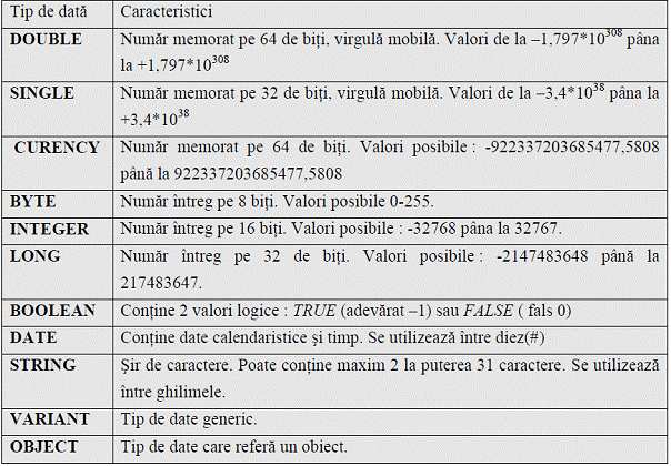 Limbajul Visual Basic pentru Access 2000 (VBA) este un limbaj orientat pe obiecte si pe evenimente. Obiectele Access 2000 sunt caracterizate prin metode si proprietati. Prin intermediul metodelor se actioneaza asupra starii unui obiect, in timp ce proprietatile indica starea acestuia.