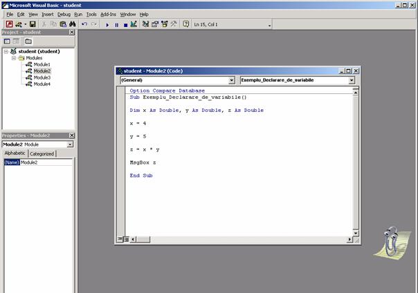Executia unui modul VBA se face alegand optiunea RUN SUB/USERFORM din meniul principal.