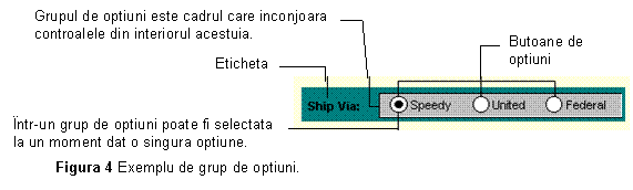 Grupul de optiuni (vezi figura 4) consta dintr-un cadru de grup si un set de casete de validare, butoane de optiuni sau butoane de comutare.