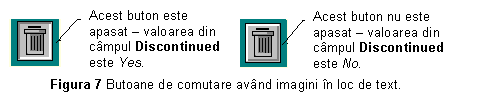 Pe butoanele de comutare puteti folosi imagini in locul textului (vezi figura 7). Spre exemplu, in locul afisarii cuvantului "Discontinued" pe butonul de comutare din exemplul anterior, puteti afisa imaginea unui cos de gunoi.