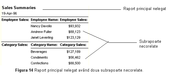Un raport principal nelegat poate servi drept container pentru subrapoartele necorelate pe care vreti sa le combinati (vezi figura 14).