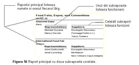 De asemenea, raportul principal poate contine datele comune din doua sau mai multe subrapoarte paralele. In acest caz, subrapoartele contin articolele detaliu corelate cu datele comune (vezi figura 16).