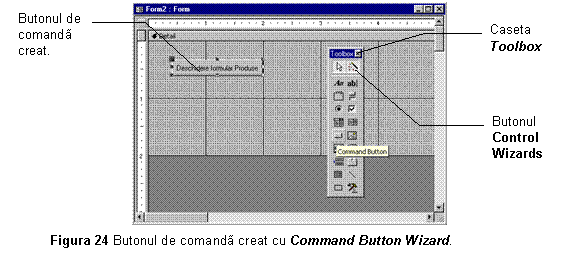 In continuare se va exemplifica modul de folosirea a unui wizard pentru a crea un buton de comanda ce va deschide un formular.