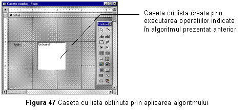 Dupa ce ati executat clic pe butonul Finish, Microsoft Access va crea controlul pe baza indicatiilor pe care le-ati furnizat in casetele de dialog ale wizard-ului (vezi figura 47).