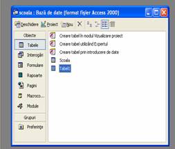 e. Preluare date externe - permite luarea datelor din tebele create cu ajutorul altor aplicatii (Excel)