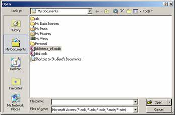 b. Deschidere (Open) - deschide o baza de date creata anterior si memorata