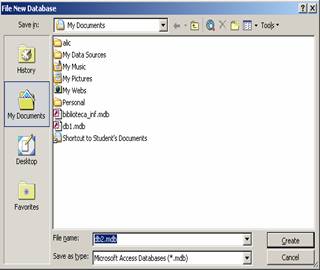 Pentru a crea o baza de date noua, in zona Open a ferestrei reprezentate in figura 1 alegem optiunea Create a new file, iar in caseta urmatoare - optiunea Blank Database. Putem, de asemenea, utiliza comenzile de creare/accesare a bazelor de date din meniul File.