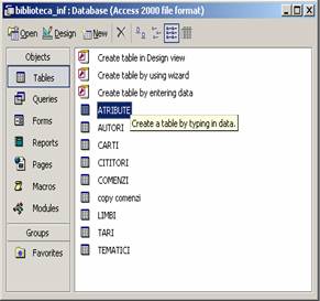 Figura.3 Figura. 4 Fereastra cu clasele de obiecte Access