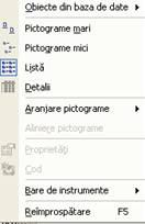 Optiunile b, c, d, e permit vizualizarea sub diferite forme ale elementelor bazei de date si a butoanelor existente in fereastra principala a bazei de date.
