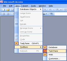 Odata lansat, ecranul initial Access va afisa, dupa cum se poate observa in figura 2, o fereastra cu bara de meniu similara tuturor aplicatiilor Microsoft Office si bara de instrumente cu contine butoanele specifice bazei de date Access si optional bara Web daca in prealabil a fost selectata urmind calea View / Toolsbar / Web