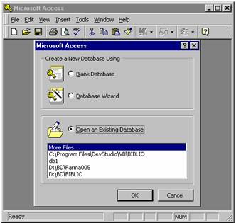 La deschiderea Access este afisata o caseta de dialog care permite: