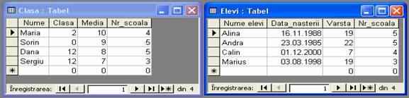 Exemplu In baza de date de la Exercitiul 1Creati o interogare Interogare 1 asupra ambelor tabele in care afisati campurile Nume_elevi, Varsta, Clasa, Media