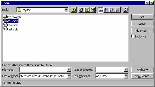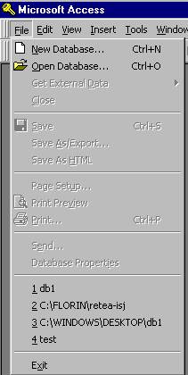 Pentru a deschide o baza de date existenta se poate alege intre urmatoarele posibilitati:
