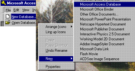 0 baza de date noua, se poate deschide prin optiunea New din meniul File, sau printr-un clic pe simbolul din bara de instrumente D