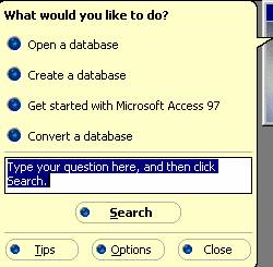 Daca ajutorul (Help) nu apare pe ecran el se poate activa prin apasarea butonului Microsoft Access Help