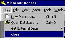 sau se apasa butonul existent in coltul din dreapta sus al bazei de date Close Window