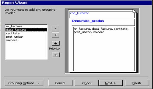Tehnica cea mai simpla si mai utilizata pentru crearea rapoartelor este Report Wizard si necesita parcurgerea etapelor urmatoare: