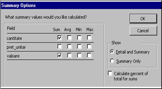 ð AutoReport (Columnar, Tabular) - sunt metode de tip Wizard care realizeaza asezarea pe coloane sau sub forma de tabel a datelor in situatie;