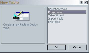 Pentru comoditate, denumirile campurilor se introduc pe verticala, urmind ca in regimul de introducere a datelor Datasheet View denumirile campurilor sa-si ocupe pozitiile obisnuite (pe orizontala). Regimul Design View nu permite introducerea inregistrarilor in tabel, ci doar descrierea campurilor care alcatuiesc tabelul.