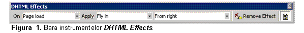 1.         In meniul View se indica optiunea Toolbars si se selecteaza bara DHTML Effects, daca aceasta nu este deja afisata.