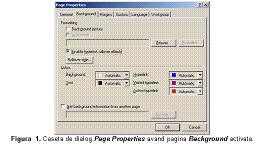 2.         In caseta de dialog Page Properties, care se afiseaza pe ecran, selectati pagina Background (vezi figura 3).
