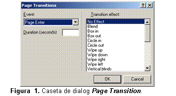 2.         Din meniul Format se selecteaza optiunea Page Transition. Pe ecran se afiseaza caseta de dialog Page Transition (vezi fig. 5).