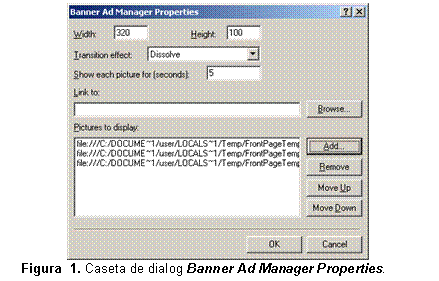 Nota: Puteti modifica proprietatile pentru un banner ad deja creat. Pentru aceasta se executa clic-dreapta pe banner ad si din meniul contextual se selecteaza Banner Ad Manager Properties. Apare caseta de dialog Banner Ad Manager Properties. Se fac modificarile dorite si la terminare se executa clic pe butonul OK.