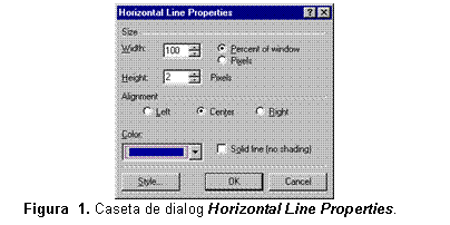 Nota: Daca pagina curenta foloseste o tema, puteti schimba numai alinierea liniei. Celelalte optiuni din caseta de dialog Horizontal Line Properties nu sunt accesibile. In aceasta situatie, modificarea celoarlalte atribute ale liniei se poate realiza numai prin modificarea temei.