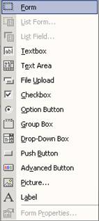 Figura 43 - tipuri de obiecte care se pot adauga in formulare