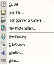 Clipart, fie importate de utilizator din diverse formate de fisiere sau de