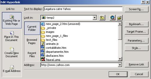 Pe langa text si imagini, FrontPage mai permite adaugarea si a altor obiecte, utilizad InsertWeb Component: