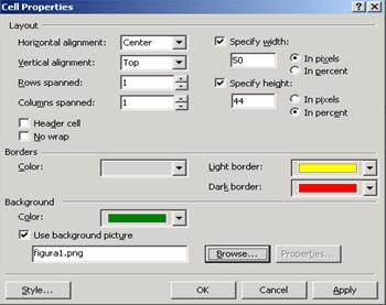 Pentru imaginile adaugate in pagina web se pot defini / modifica si proprietatile de afisare ale acestora, printre care: modalitatea de aliniere fata de text, aliniament, grosimea bordurii imaginii, spatierea orizontala si verticala fata de alte obiecte din pagina, marimea relativa (in procente) sau absoluta (in pixeli), un hyperlink si un text (balon) care va aparea la pozitionarea mouse-ului deasupra imaginii.