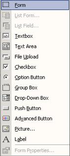- Submission Form - este o alta pagina web simpla ce contine un formular HTML care utilizeaza componenta Save Results (Form properties Send to Database) pentru a adauga inregistrari intr-o baza de date. Spre deosebire de optiunea Send Results to Database care presupune crearea unui formular si apoi atasarea campurilor acestuia la o baza de date, Database Interface Wizard selecteaza sau creeaza in primul rand o baza de date si apoi un formular pe baza tabelelor bazei de date;