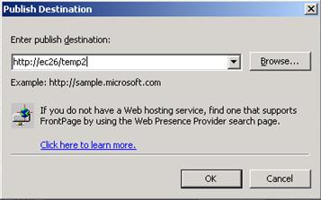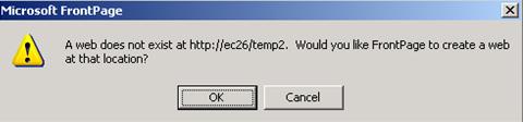 In cazul in care numele de utilizator curent si parola nu au autoritatea sa creeze un web in locatia dorita, FrontPage va cere un nume de utilizator si o parola care au aceasta autoritate;