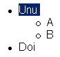 In figurile urmatoare este prezentata o lista pliabila in diferite etape. Extinderea sau plierea listei se face executand dublu-clicuri pe elementele corespunzatoare. De exemplu, pentru a extinde lista elementelui Unu se executa dublu-clic pe Unu, iar pentru a axtinde lista elementului B se executa dubluc-clic pe B.