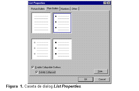3. In caseta de dialog List Properties (vezi fig. 7), selectati caseta de validare Enable collapsible outlines din eticheta care este afisata.