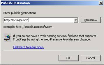 3. an cazul in care site-ul nu a mai fost publicat se deschide o caseta de dialog prin care se cere alegerea destinatiei de publicare.
