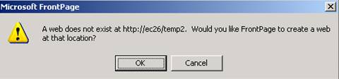 4. prin apasarea butonului OK incepe procesul de publicare. Daca locatia destinatie nu contine deja un web bazat pe server creat de FrontPage, va fi afisata o caseta de dialog prin care se solicita confirmarea crearii unui web bazat pe FrontPage.