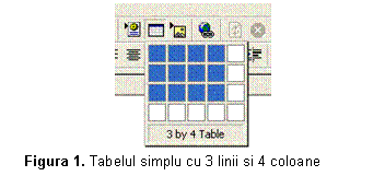 2.      In bara instrumentelor standard executati clic pe butonul Insert Table , apoi deplasati indicatorul mouse-ului (cu butonul din stanga apasat, daca este necesar) spre in jos si la dreapta pana cand se afiseaza numarul de linii si coloane dorit (vezi fig. 8).
