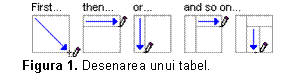 Un tabel poate fi creat prin desenarea lui folosind instrumentul Draw Table (se deschide meniul Table si se selecteaza optiunea Draw Table sau se executa clic pe butonul Draw Table din bara instrumentelor Tables). Cu ajutorul acestui instrument se traseaza conturul tabelului si apoi se deseneaza celulele tabelului. Puteti crea un tabel complex cu celule de diferite dimensiuni si cu un numar variabil de linii si coloane.