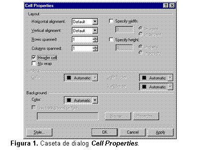 2.       Executati clic-dreapta pe selectie si selectati optiunea Cell Properties din meniul contextual afisat. Apare caseta de dialog Cell Properties (vezi fig. 14, pag. 16).