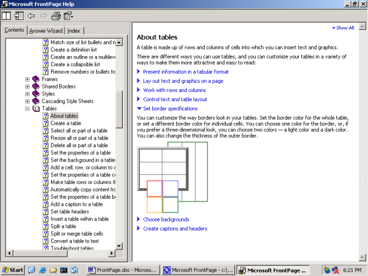 Tabele Metode de utilizare a tabelelor Un tabel este format din celule dispuse pe linii si coloane in care puteti insera text sau imagini. In Microsoft FrontPage puteti utiliza tabelele in mai multe moduri. Prezentarea informatiei in forma