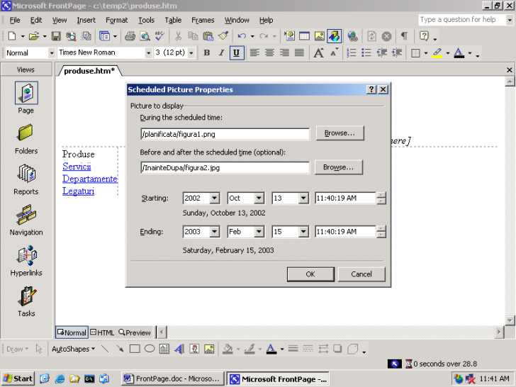 Programarea aparitiei unei pagini sau imagini             O imagine sau pagina poate fi planificata sa apara in interiorul unei anumite pagini intr-o anumita perioada de timp. Aceasta facilitate poat