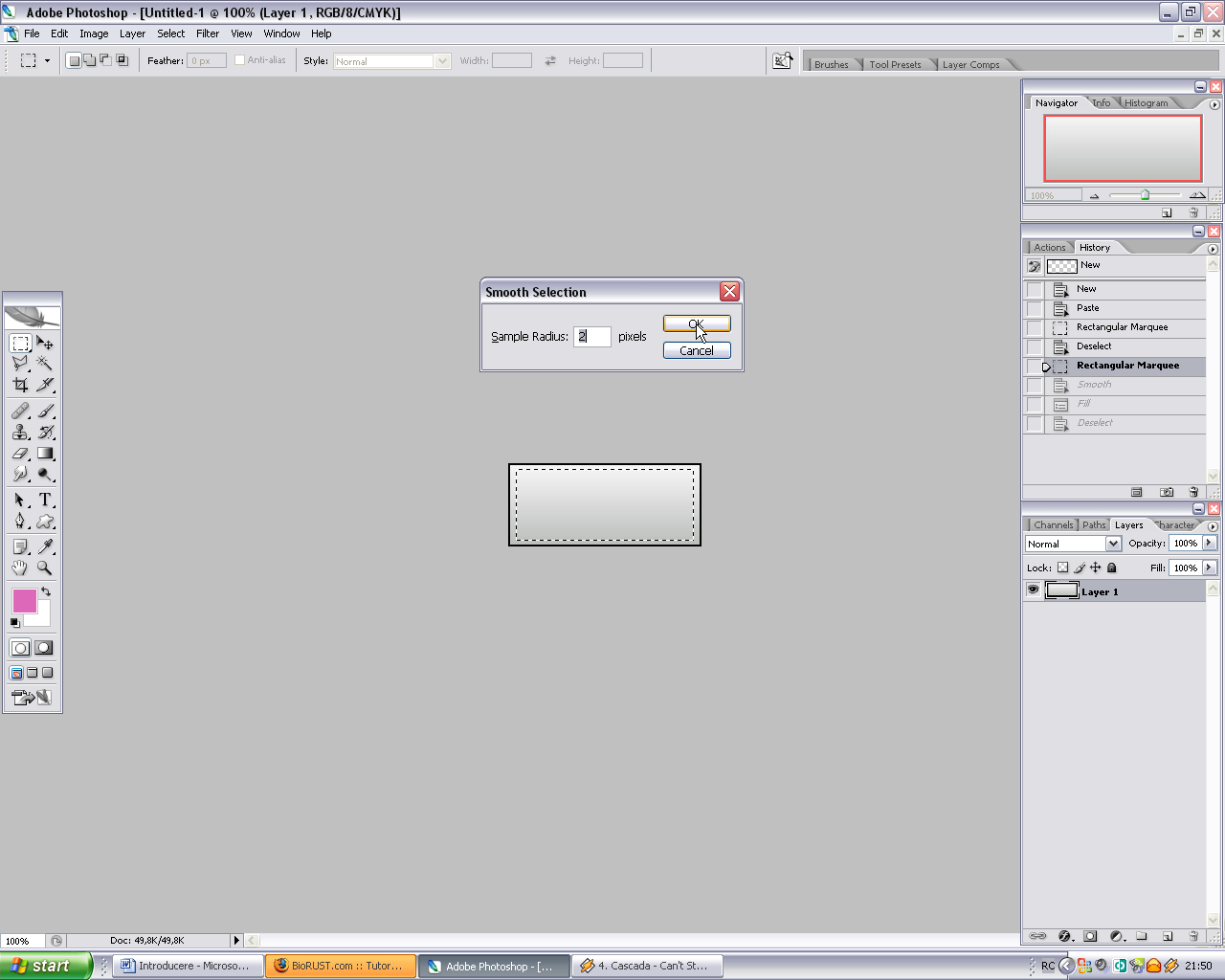 Photoshop - Cum se… creaza un buton de gel? Pasul 1. Creati un fisier nou de 200x100 pixeli. Creati un strat nou si folosind unealta de selectie patrata sau rotunda creati un patrat