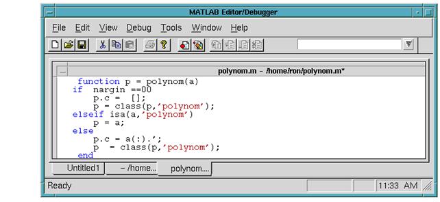 MATLAB-ul dispune de un editor propriu, editor care este asociat si cu un program de depanare (debugger). Editorul/debugger-ul ofera posibilitatea de a efectua operatiunile de editare de baza precum si accesul la instrumente de depanare a fisierelor .m .