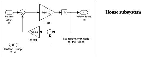 Sunt utilizate subsisteme care fac modelul simplu si configurabil (un subsistem este un bloc alcatuit dintr-un grup de blocuri conectate). Modelul contine 5 subsisteme: Thermostat, House si trei Convertoare de temperatura (Temp Convert), din care 2 convertesc Fahrenheit in Celsius si unul Celsius in Fahrenheit.