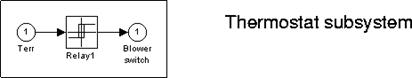 Subsistemul Thermostat este de tip releu si determina pornirea sau oprirea sistemului de incalzire. Se pot vedea blocurile componente la efectuarea unui dublu click pe subsistem.