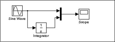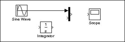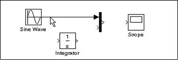 In afara liniilor care conecteaza iesirile unor blocuri la intrarile altora exista si linii de bransare a unor linii la intrarile unor blocuri (se poate observa in modelul prezentat initial). O astfel de linie este utilizata pentru conectarea iesirii din blocul Sine Wave si la blocul Integrator (exista deja conexiunea la blocul Mux).