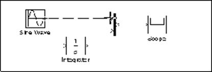 2. Se apasa si se tine apasata tasta Ctrl. Se apasa butonul mouse-ului si apoi se trage pana la intrarea in blocul Integrator sau pana deasupra acestui bloc.