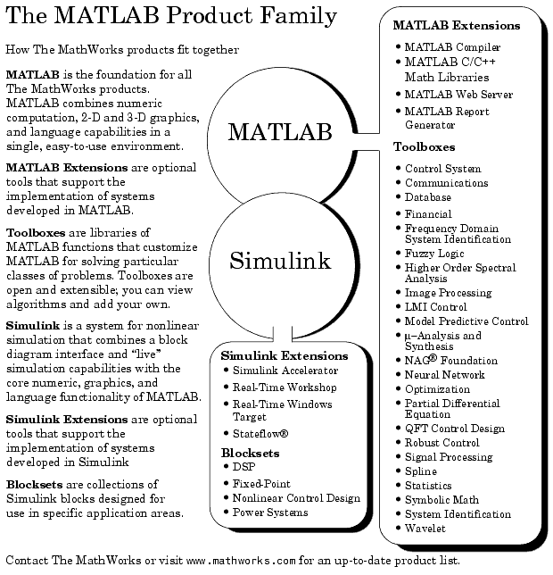Toolbox-urile reprezinta o familie de aplicatii care permit invatarea si aplicarea tehnologiilor specializate din diverse domenii. Aceste toolbox-uri sunt colectii de functii MATLAB (functions) (M-files) care extind mediul MATLAB pentru rezolvarea unor clase particulare de probleme. Cateva din cele mai utilizate aplicatii sunt prezentate in figura urmatoare.